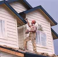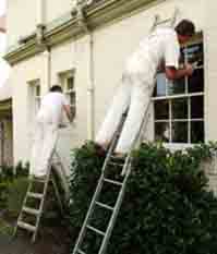 |      | Painting the exterior of your house can be a daunting task! You really have two options; do it yourself, or contract professional painters to undertake the project for you. Because of the sheer size of painting the exterior of your house, we have geared up especially for the job. If your exterior is pebbledash, roughcast, tyrolean or any other rendered surface, we are able to cover that quickly and easily with a large range of equipment we have at our disposal. ·   We use professional grade rollers and brushes ·   Repair and fill all holes before painting ·   Scrape and sand peeling or flaking paint ·   Use primer on all raw or sanded surfaces ·   Replace rotten or broken siding or trim boards ·   Use tarps to protect your property and plastic to protect your floor ·   Use no-residue tape for all masking or bordering Exterior painting has three levels of job application. Economy:   Scrape off loose paint, prime bare wood and then paint. Advanced:   Includes sanding of rough edges and surface blemishes. Restoration:   Strip surface down to bare wood, prime and paint. Choose the type of job that works with your budget. Remember discounts apply when exterior and interior are bundled together . |